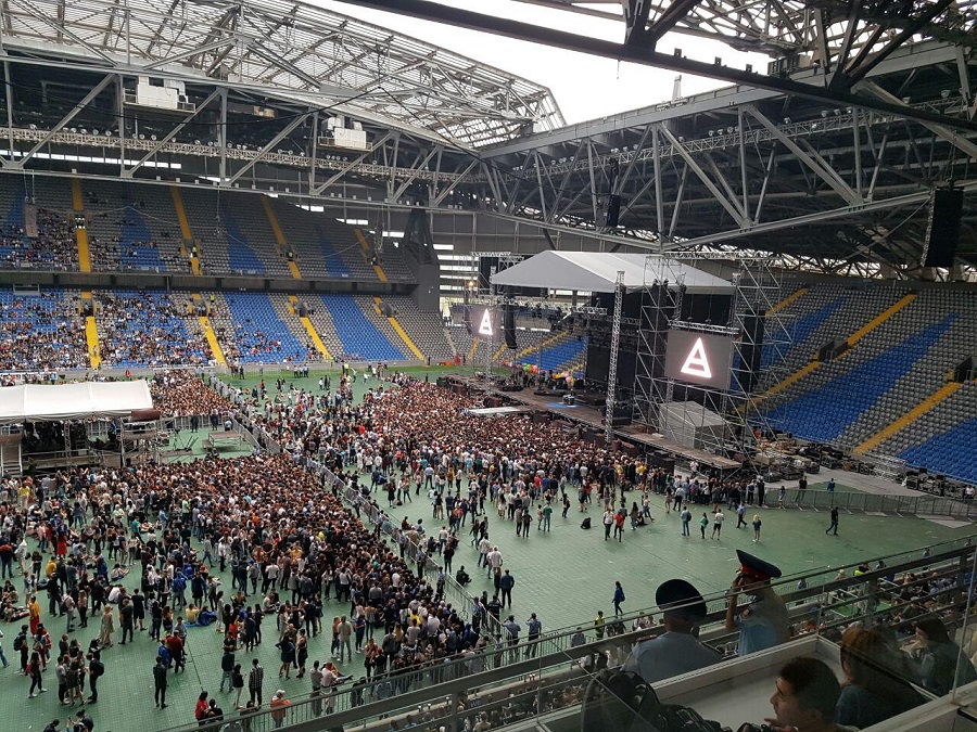 Концерт начался в 10-м часу вечера на стадионе «Астана Арена». За час до начала выступления на разогреве публики играла клубная музыка. В этот момент оператор в зале наводил камеру на зрителей, видео проецировалось на экраны по краям сцены, в которых была рамка в форме сердца.