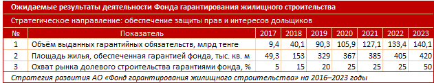 "Что происходит на этом рынке сейчас, трудно понять. К примеру, один из самых популярных и надёжных каналов долевого строительства — Фонд гарантирования жилищного строительства — намерен увеличить объём выданных гарантийных обязательств с 40,1 млрд в 2018-м до 140,1 млрд в 2023 году. За 11 месяцев фонд увеличил свою долю на рынке долевого строительства с 5% до 13%. В следующем году ФГЖС планирует контролировать 20% рынка. К 2023-му — уже 50%. Причиной роста может стать то, что это единственный инструмент, являющийся подушкой безопасности для обеих сторон — и застройщиков, и дольщиков. Дольщики стали понимать, что вероятность рисков долгостроя при работе с ФГЖС сведена к нулю. Благодаря информационной работе ФГЖС и МИО дольщики начали разбираться в системе долевого строительства. Акиматы стали публиковать информацию по каждому жилому комплексу. Это служит хорошей подстраховкой и для акиматов: предупреждая население, МИО снимают риск социальных напряжений на местах. Понимают свою выгоду и застройщики, которые, используя средства дольщиков, получают беспроцентный кредит на продолжение строительства", - пояснили исследователи.