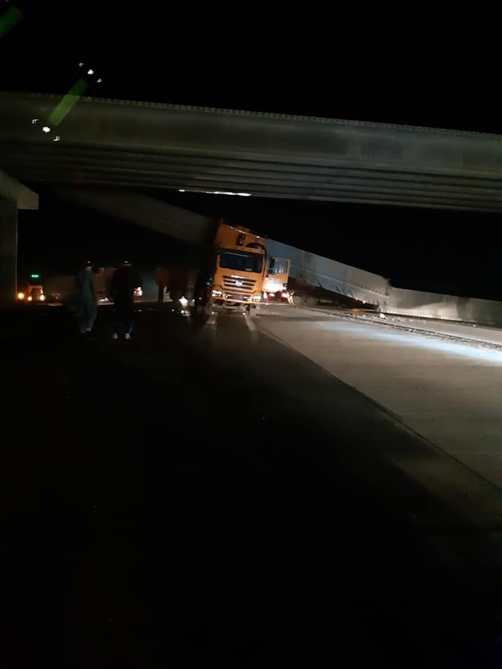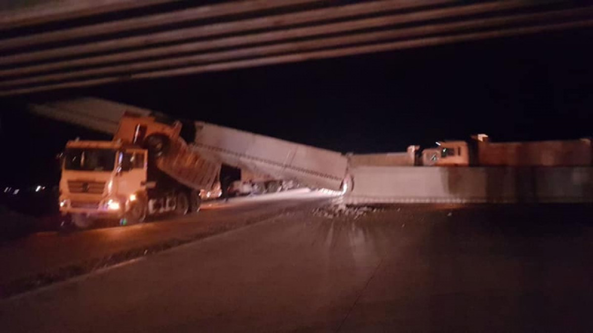 На видео и фото видно, что бетонная конструкция упала на прицеп грузовика. По словам очевидцев, происшествие случилось вечером, 23 августа, в районе села Пограничное в Павлодарской области на автодороге Павлодар - Нур-Султан.