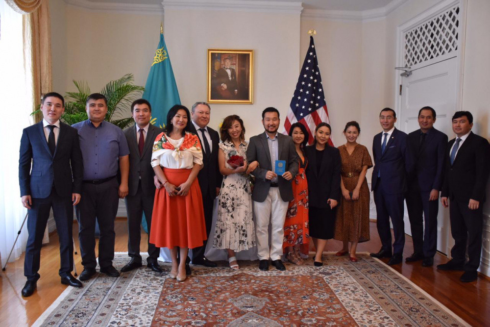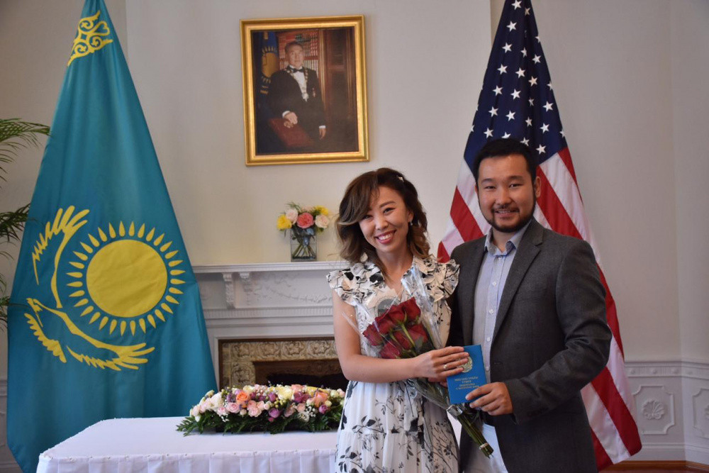 В посольстве Казахстана в США поженили студентов "Болашака", сообщает BaigeNews.kz со ссылкой на страницу посольства в Facebook.