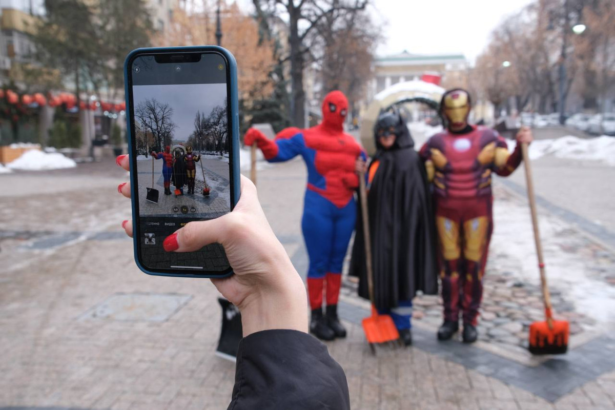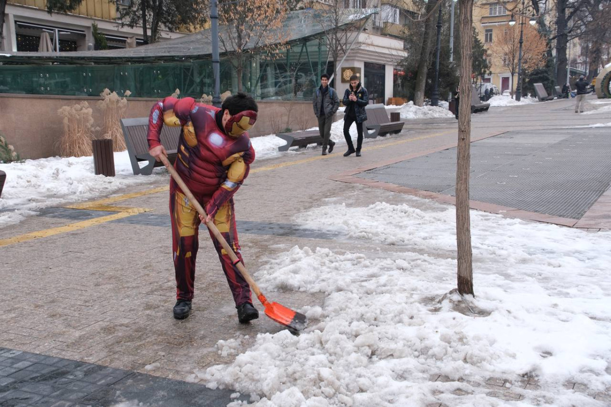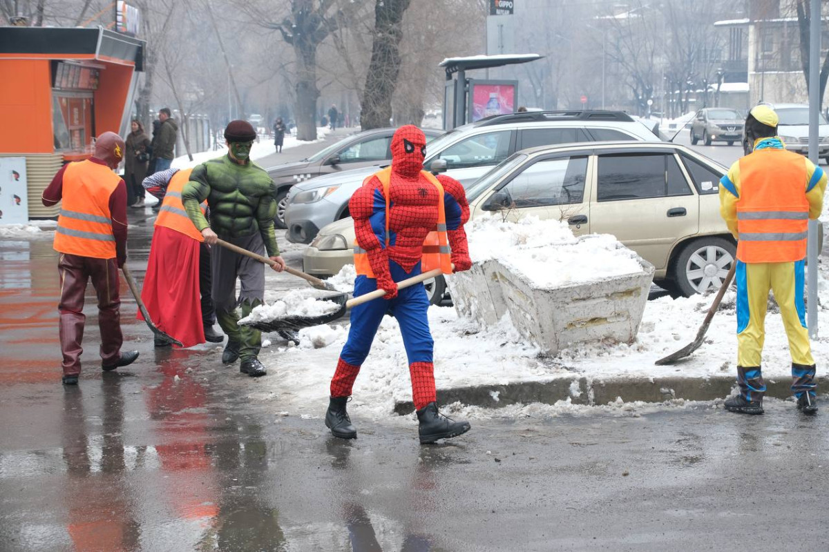 Коммунальные службы Алматы организовали акцию "Супергерои среди нас". Работники сегодня вышли на уборку улиц от снега в костюмах Человека-паука, Халка, Тора, Флэша и других, передаёт BaigeNews.kz.