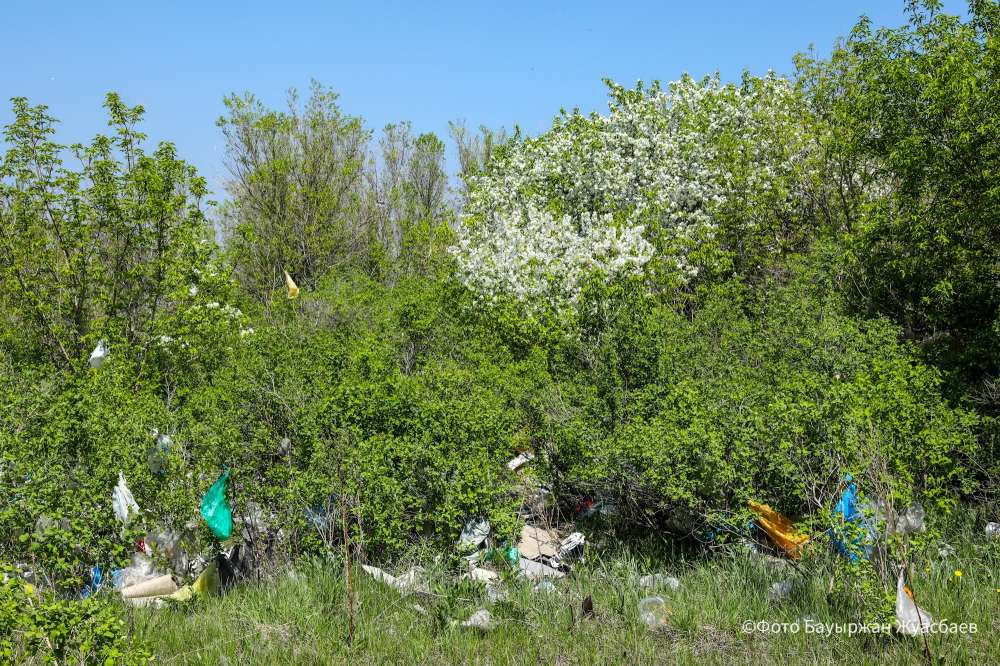 Пока проблема обсуждается на высшем уровне, живописный пейзаж Усть-Каменогорска контрастирует с такими горами мусора.