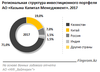Оставшиеся 29% инвестиционного портфеля сформированы 34 проектами на территории других государств. Наибольшее количество проектов, проинвестированных АО "Казына Капитал Менеджмент", реализуется в сфере энергетики (22 проекта) и транспортной сфере (7 проектов).
