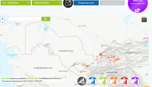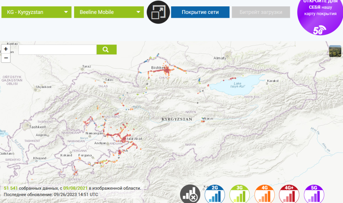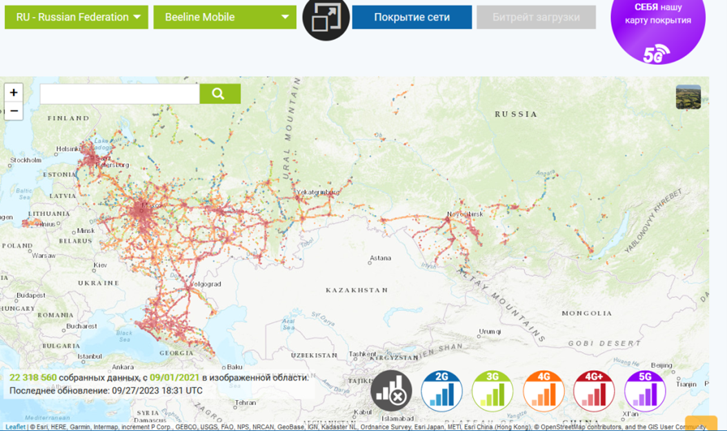 Как легко увидеть, в России базовых станций намного больше. В Узбекистане и Кыргызстане сеть также охватывает небольшое количество мест. У других операторов ситуация обстоит примерно так же.