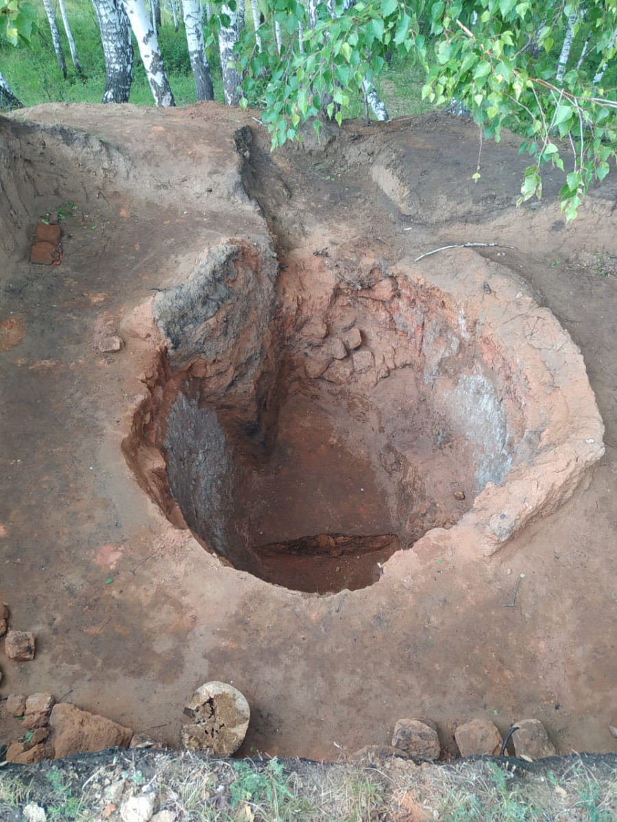 "Помимо основного ряда кирпичей и обмазки там еще присутствует завал второго ряда. Непонятно, был ли это тоже завал или это уже поздняя конструкция. К примеру, сначала использовалась конструкция как печь для обжига и плавки руды, а позже ее использовали качестве жертвенника. А может было захоронение, потому что собаки не просто так появляются в таких конструкциях. Против мнения, что это доменная печь, говорит слишком большая глубина. Они обычно располагаются ближе к поверхности. Не такие глубокие. Против того, что это погребение говорит отсутствие пока самого тела и следов кремации. Перед тем, как отправиться в городище (там я был впервые), мне говорили, что при каждом взмахе лопатой вопросов становится больше, чем ответов. Это действительно так", - объяснил Павел.