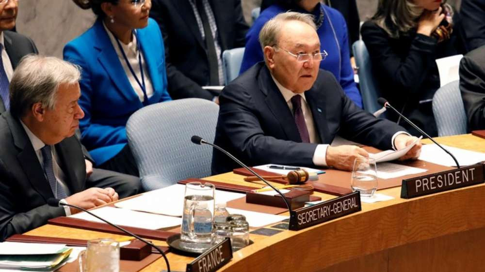"Схожий конструктивный подход, на наш взгляд, можно применить и в вопросе урегулирования ядерной проблемы Северной Кореи. Как известно, текущие события на Корейском полуострове демонстрируют глубинные противоречия. В этой связи, мы призываем вовлеченные стороны к скорейшему и конструктивному решению северокорейского вопроса. Мы выступаем за предоставление "ядерной пятеркой" гарантий безопасности КНДР как важного условия для создания атмосферы доверия и возвращения Пхеньяна за стол переговоров. Казахстан готов предоставить площадку для переговоров в случае такой необходимости у вовлеченных сторон", — из выступления Нурсултана Назарбаева на заседании Совета Безопасности ООН "Нераспространение ОМУ: меры доверия", 2018 год.
