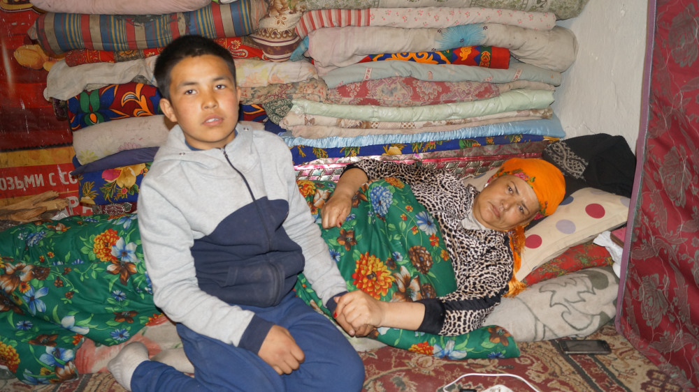 После смерти мужа женщина была вынуждена сама содержать шестерых детей. Перебравшись из Дарменского сельского округа Арысского района в Шымкент, семья сняла за пять тысяч тенге обветшалую постройку, состоящую из одной комнаты и веранды. Год назад у Дильбар обнаружили злокачественную опухоль, после чего ей сделали операцию, но болезнь дала осложнения, и около двух месяцев назад женщина и вовсе перестала ходить, полностью утратив трудоспособность.