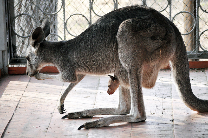"У кенгуру дети рождаются ростом чуть ли не с червячка и сами добираются до сумки. Поэтому его долго никто не видел, вот только недавно малыш высунул мордочку из сумки. По крайней мере, в сумке он будет находиться еще месяцев семь. Даже несмотря на то, что родители его выйдут в теплый вольер", - добавил Михаил Сорокоумов.