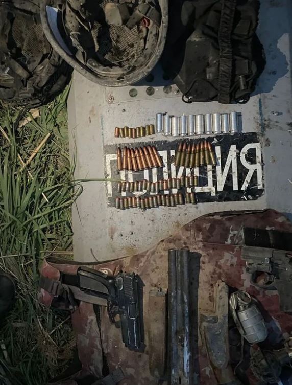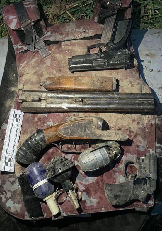 "В тайнике оказался целый арсенал. Обнаружено два травматических пистолета, обрез гладкоствольного ружья, три светошумовые гранаты, более 100 патронов различного калибра, а также средства защиты: полицейский щит, бронежилет и две каски", — сообщил начальник УБОП ДП области Жетысу Саркытбай Кусаинов.