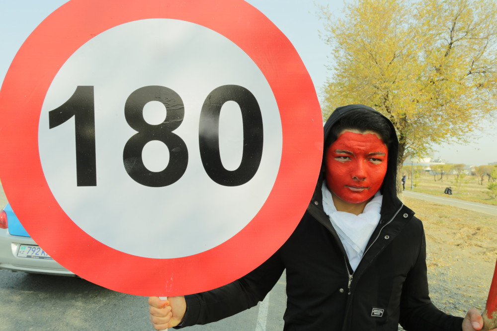 Суть мероприятия состояла в том, что во время его прохождения на одном из самых оживленных участков вдоль автотрассы республиканского значения «Алматы-Талдыкорган» молодые активисты совместно с сотрудниками дорожно-патрульной полиции выстроились с нарисованными знаками ограничения скорости «40», «60», «80», «Задумайся», «100» и «Тебя ждут дома». Ну а в самом конце по трассе их ждал человек в стилизованном костюме красной смерти с косой и с табличкой «180».