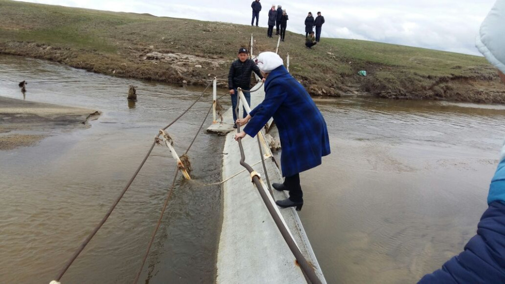 Он рассказал: мост ремонтировался в прошлом году. Уроженец села Жанат Карабалин завёз за свой счет стройматериалы; сами же работы выполнялись силами акимата Троицкого сельского округа и местными жителями. К слову, до 1990 года это был висячий мост, который постепенно разрушился.