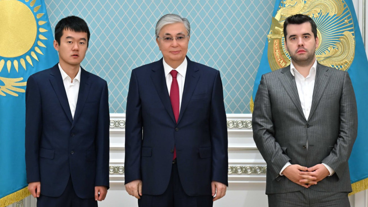 Президент Касым-Жомарт Токаев принял участников матча за звание чемпиона мира по классическим шахматам Дин Лижэня и Яна Непомнящего, а также президента Международной федерации шахмат (ФИДЕ) Аркадий Дворковича.