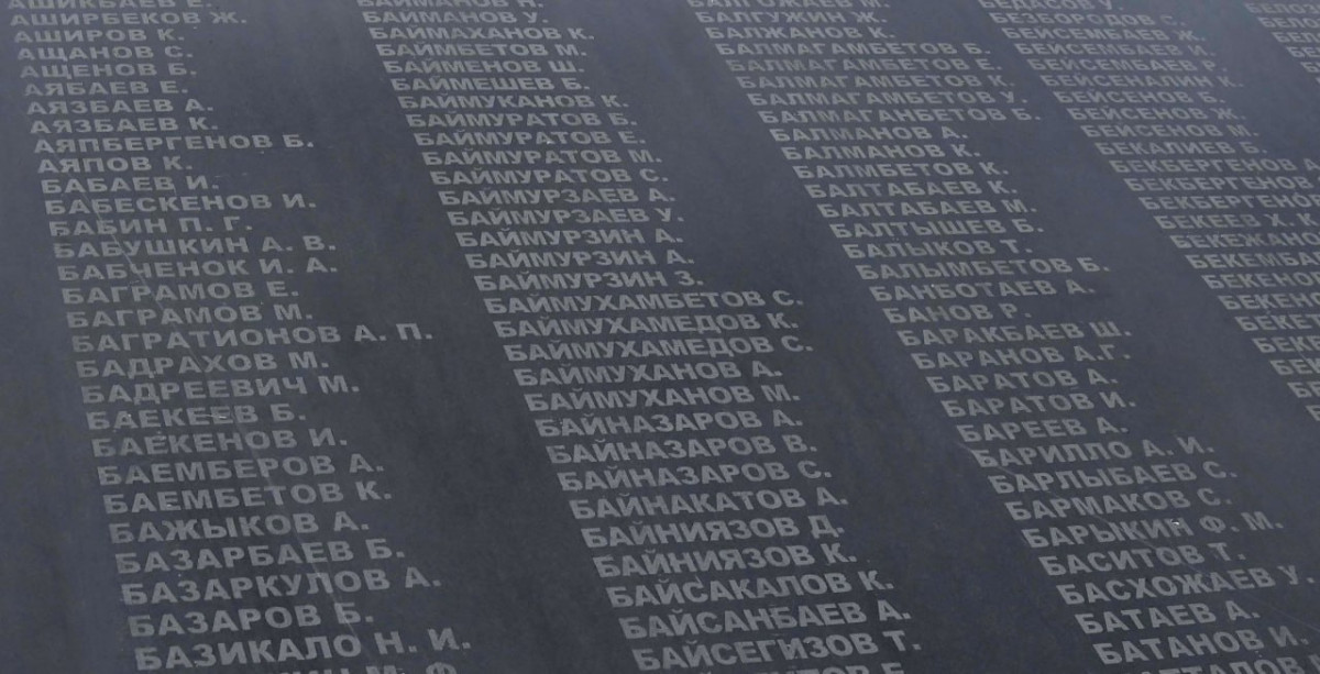 В правой части стены находится панно с картой Казахстана, на которой отмечены города Алматы и Актобе, где в 1941 году формировались стрелковые бригады, а также столица Астана. На мраморных плитах выгравированы имена 9312 воинов, призванных в эти бригады из Казахстана.