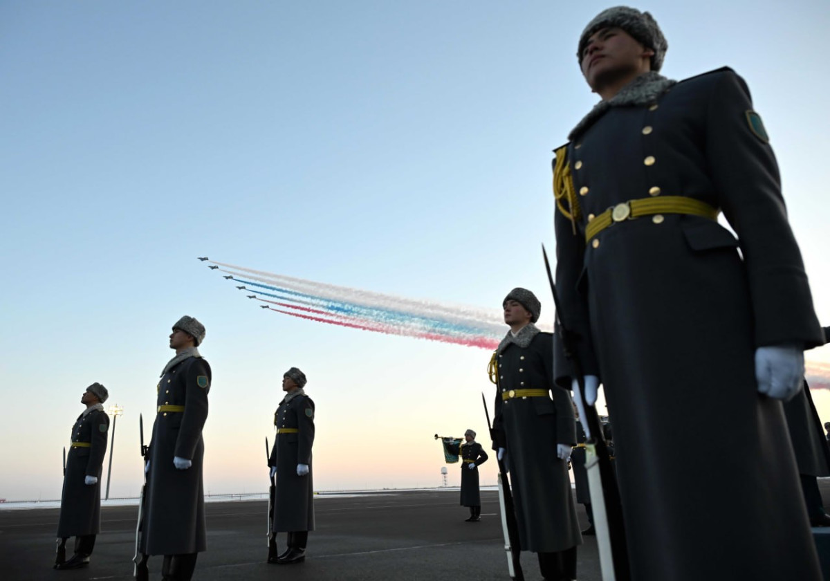 "В воздушной гавани в честь высокого гостя был выстроен почётный караул. В знак искренней дружбы между народами Казахстана и России дети с флажками двух стран приветствовали президента Владимира Путина и членов официальной делегации, а также прочитали стихи", - говорится в сообщении.