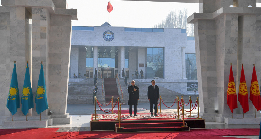 Касым-Жомарт Токаев и Сооронбай Жээнбеков совершили обход Почетного караула и представили друг другу членов официальных делегаций. Затем в Зале аксакалов состоялась встреча в узком составе.