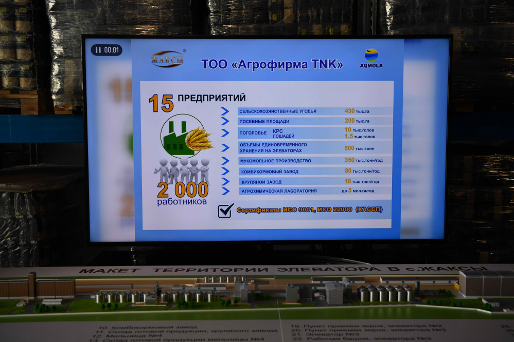 На агропредприятии Главе государства продемонстрировали новую технологическую линию по производству круп и овсяных хлопьев быстрого приготовления мощностью 12 тыс. тонн в год, а также показали образцы готовой продукции.