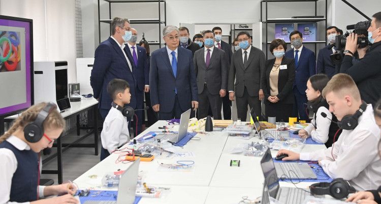 Затем Касым-Жомарт Токаев ознакомился с выставкой детского художественного творчества, деятельностью нового инновационного блока Дворца. Глава государства осмотрел лаборатории по биологии и нейротехнологии, гидропонике, 3D-моделированию и роботостроению, а также студии анимации, звукозаписи и образовательных медиапроектов.
