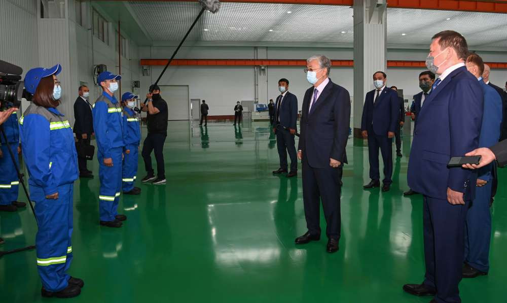 Президент Касым-Жомарт Токаев в рамках рабочей поездки в Северо-Казахстанскую область ознакомился с работой Петропавловского электротехнического завода Alageum Electric, передает
