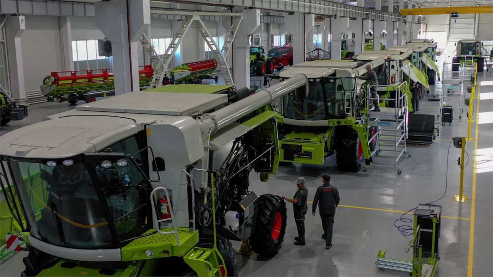посетил завод по сборке сельскохозяйственной техники CLAAS. Президенту показали собираемые здесь зерноуборочные комбайны, тракторы и посевные комплексы, а также рассказали о планах по дальнейшему развитию производства.