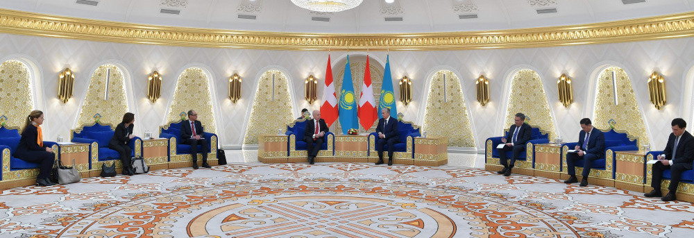 Двусторонним переговорам предшествовала официальная церемония встречи во дворце "Акорда". После того как прозвучали государственные гимны двух стран, начальник роты Почетного караула отдал приветственный рапорт президентам Казахстана и Швейцарии. Главы государств совершили обход Почетного караула, затем в "Восточном зале" резиденции состоялась встреча в узком составе.