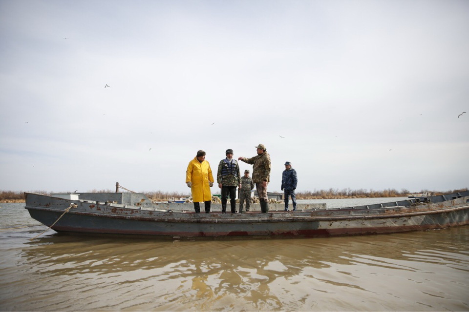 Аким области Нурлан Ногаев, в сопровождении руководителей пограничных служб, полиции, рыбного хозяйства, проверил береговую зону Урало-Каспийского бассейна.
