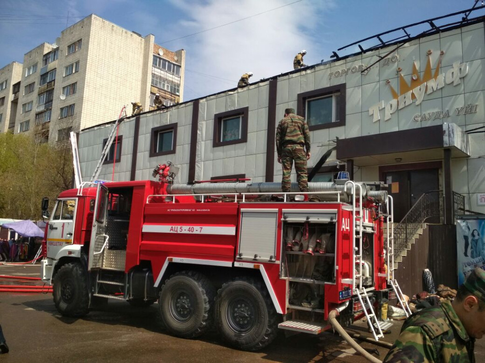 "Произошло загорание кровли в двухэтажном торговом доме "Триумф". Пожар локализован в 13.05 и ликвидирован в 13.22. В результате пожара повреждена наружная отделка здания. Площадь пожара составила 400 кв м. Эвакуировано 35 человек. Жертв и пострадавших нет", - сообщили в КЧС МВД РК.