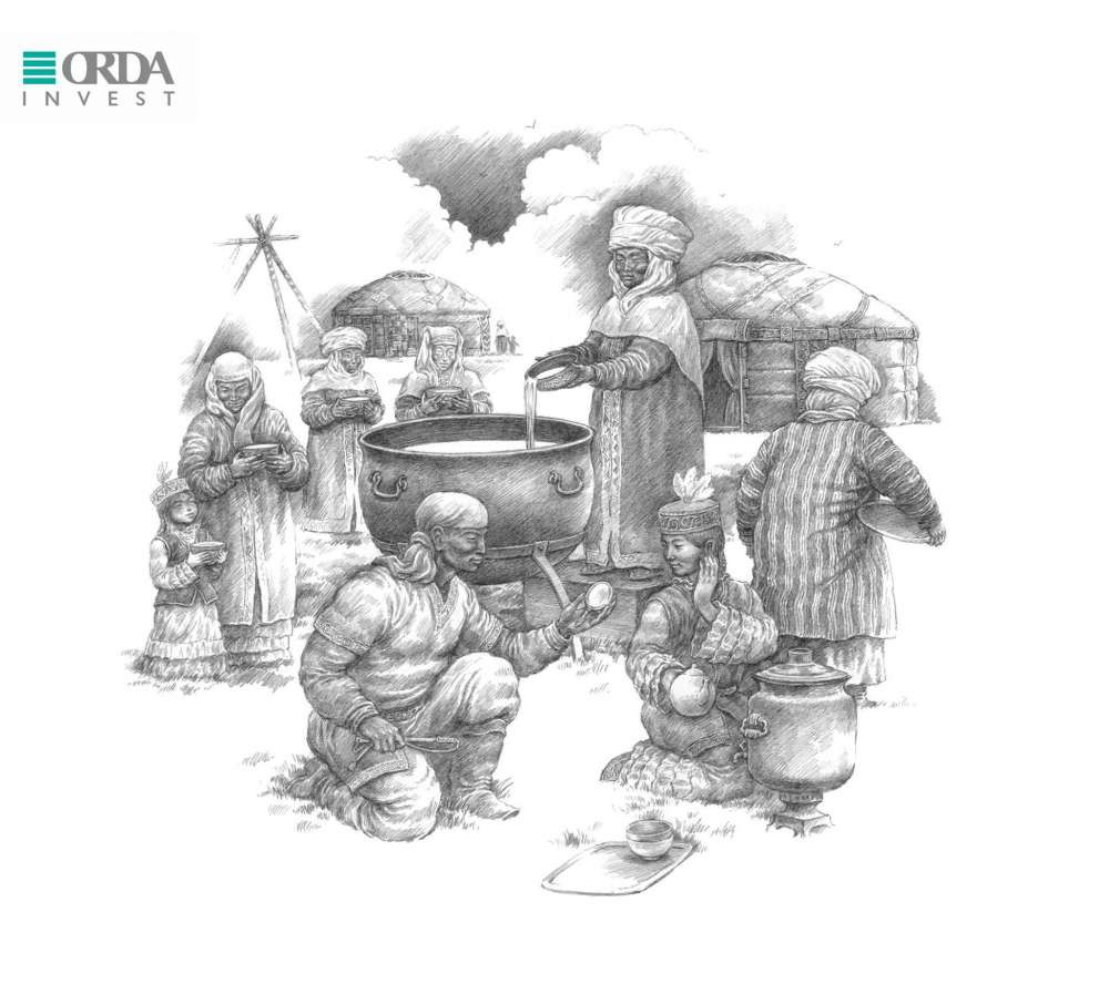 После чего на Наурыз в каждом ауле в один огромный казан сливали и перемешивали приготовленное каждой семьёй традиционное блюдо наурыз коже, которое варилось из семи компонентов.