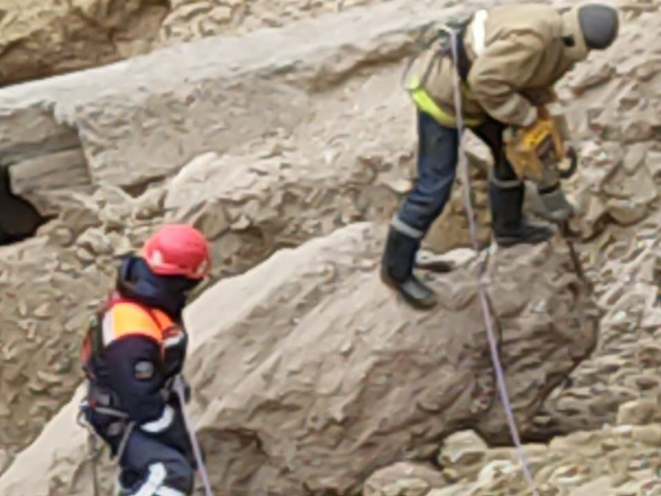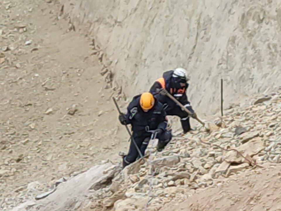 "Однако, продолжается осыпание грунта и горной породы, место поисково-спасательных работ приходится постоянно расчищать от негабаритных камней. В тех места, куда не может подобраться техника, спасатели работают вручную с помощью пневмоэлектроинстарументов", - сообщили в ДЧС.