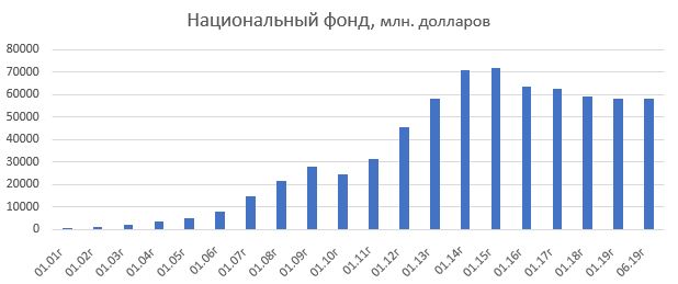 Напомним, что Национальный фонд РК был создан Указом Президента Казахстана в 2000 году, и к его концу были накоплены первые средства – 1,24 млрд долларов. Впоследствии объёмы только нарастали и достигли пика в августе 2014-го. Тогда в Нацфонде было 77,2 млрд долларов. Однако дальше суммы стали снижаться. Так, по состоянию на июнь 2019 года размер Нацфонда составлял 58,177 млрд долларов (около 22,54 трлн тенге).