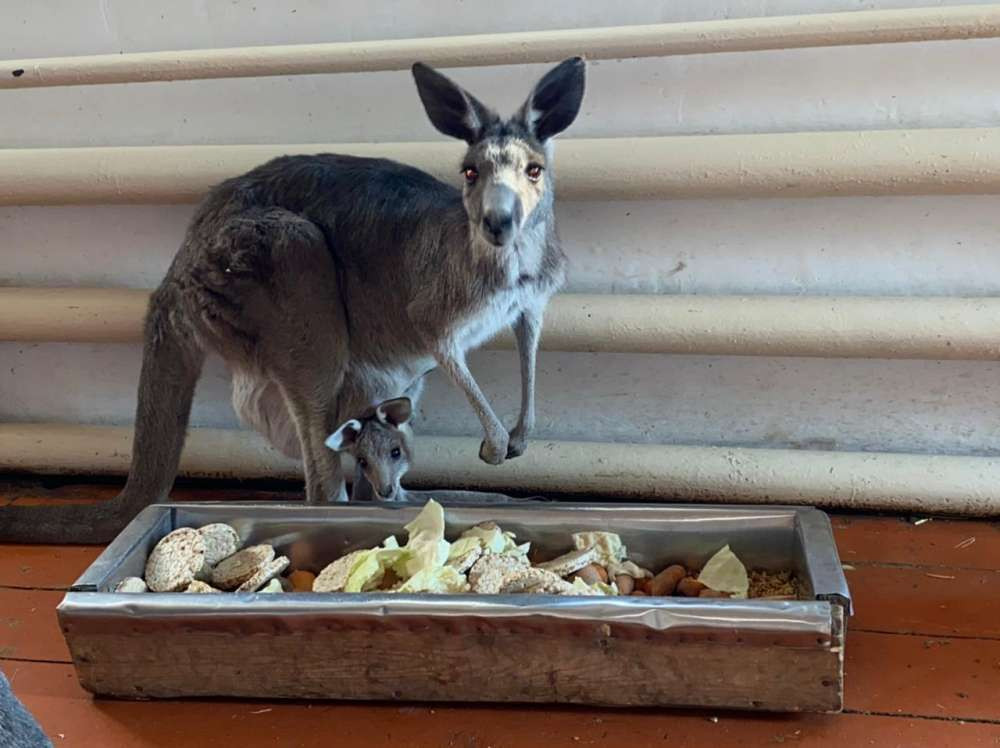 В сутки в Алматинском зоопарке взрослый кенгуру съедает около трех килограммов зелени: это фрукты, морковь, капуста, лук, сельдерей, сено и ветки деревьев. Еще в рацион входят крупы и хлеб.