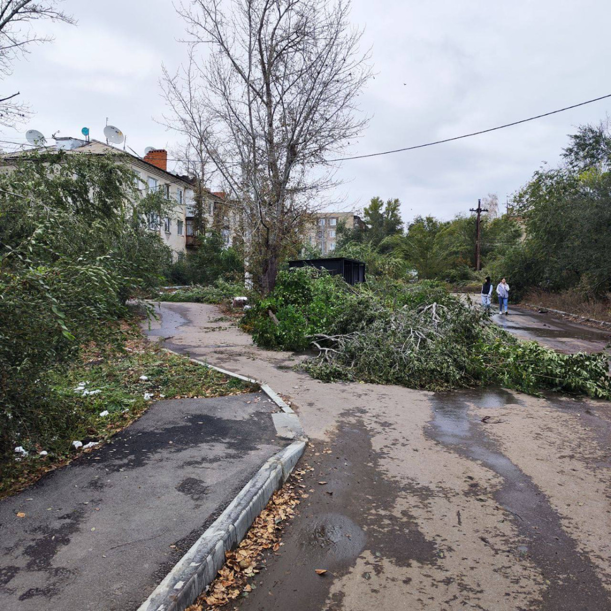 На другой день после стихии тревогу забили жители многоквартирного дома по ул. Кочубея, 8, расположенного в районе КЖБИ. Они начали писать в социальных сетях, что их ситуация сравнима с армагедоном. Домам не один десяток лет, некоторые из них давно признаны аварийными, а жители ждут расселения в арендные квартиры. Вокруг этих малоэтажных домов очень много деревьев, посаженных еще на заре зарождения города, поэтому преобладают старые клены и карагачи. Так как снежный циклон ударил по деревьям больше всего, то жители дома оказались просто под шквалом летящих веток.