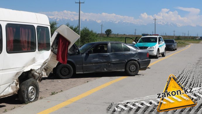 В Алматинской области столкнулись три автомобиля и микроавтобус, сообщает Zakon.kz.