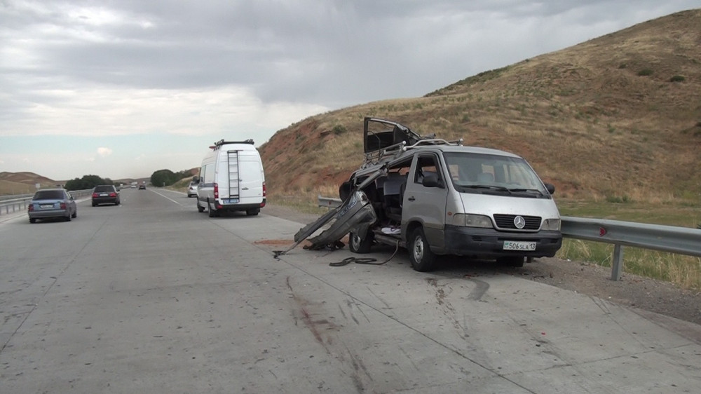 Авария с участием легковушки марки "Мазда" и микроавтобуса "Sang Yong Istana" произошло 25 июня примерно в 10 часов утра на территории Казыгурсткого района Туркестанской области, передаёт корреспондент BNews.kz.