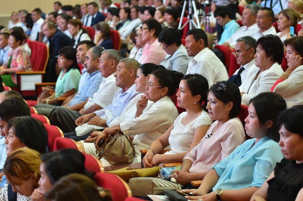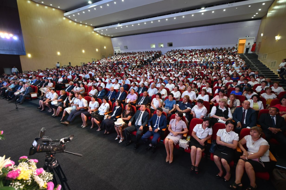 Глава региона в своей вступительной речи поздравил педагогов с началом нового учебного года и остановился на задачах, изложенных в программе духовного возрождения Главы государства в сфере образования.