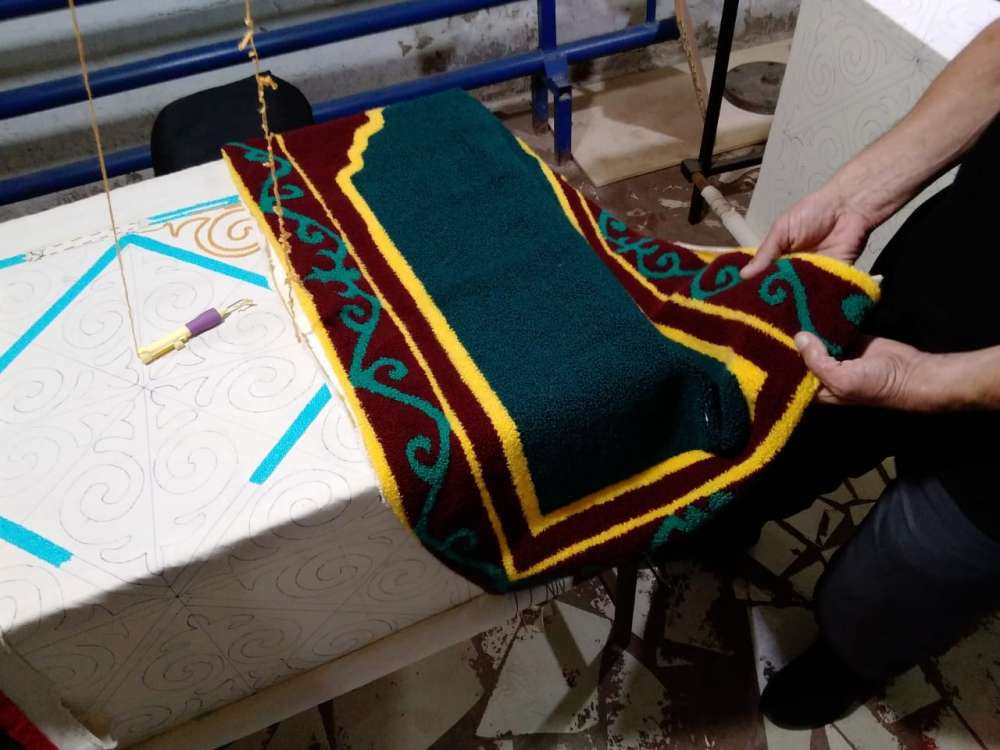 — Этим искусством я занимаюсь давно. Если точно, то с 1992 года. Научился этому я в Атырау. Увидел, как ковры делаются, посмотрел, мне понравилось, сразу понял, что это производство по моей линии. Мне нравится делать такие изделия. Я занимаюсь этим, потому что мне нравится красота. Ты создаёшь красоту своими руками. Подбираешь цвета, которые будут между собой сочетаться. Ещё нравится тот момент, что можно старые свитера, шарфы, шапки просто распустить и сделать из них ковёр или жайнамаз. Одним словом, из ничего могу на любом полотне создать ковёр. Главное мне сказать, что вы хотите видеть на полотне. Могу сделать, например, жайнамаз с мечетью, либо ковер с цветами. Даже портрет человека могу ткать на ковре, если нужно.