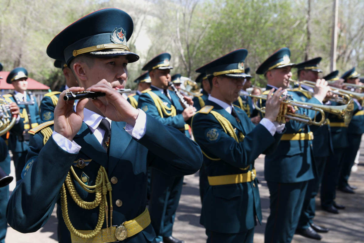 Во дворе дома, где живёт фронтовик, музыканты Центрального военного оркестра Национального военно-патриотического центра Вооруженных сил исполнили концертную программу.