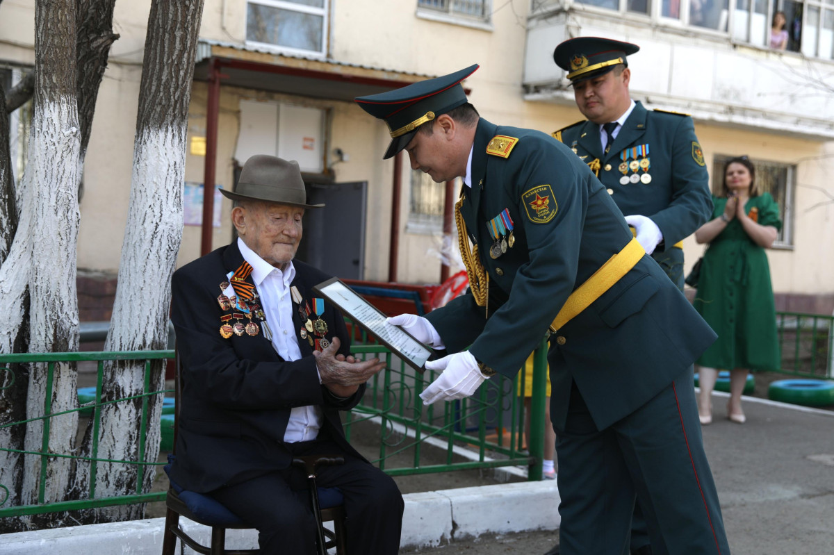 В Байконурском районе Астаны военнослужащие поздравили 97-летнего ветерана Великой Отечественной войны Михаила Григорьевича Кулика с Днём Победы, передаёт BaigeNews.kz со ссылкой на пресс-службу Министерства обороны РК.