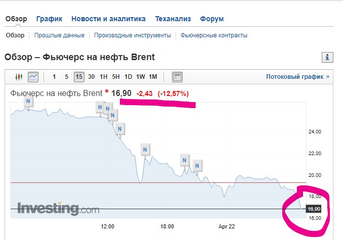 Ниже 17 долларов стоимость нефти марки Brent (июньские фьючерсы) упала впервые с 1 апреля, так в 10:00 по времни Нур-Султана ее цена впервые с 2001 года снизилась до 16,90 доллара за баррель.