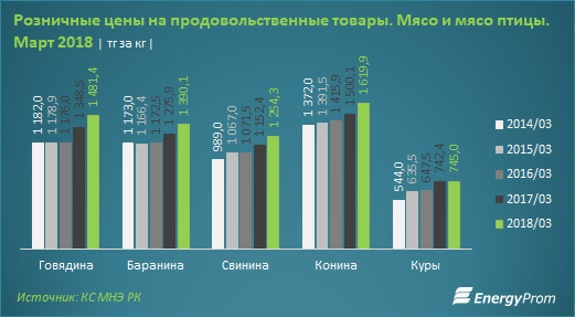 Мясо дорожает быстрее, чем прочие продукты питания - на 8-10% за год, при среднем росте цен на продтовары - всего на 5,5%, передаёт корреспондент BNews.kz с ссылкой на ENERGYPROM.KZ