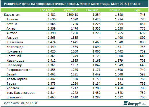 При этом практически не изменились в цене только куры - рост лишь на 0,4%, до 745 тг за кг.