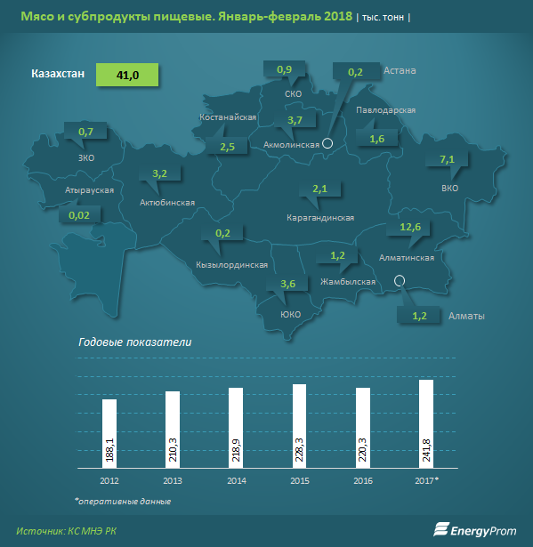 Отметим, что производство мяса растет - за 2 месяца объемы выпуска достигли 41 тысячи тонн - сразу на 12,8% больше, чем годом ранее.