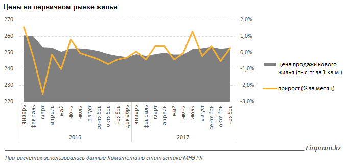 На первичном рынке жилья, напротив, цены выросли на 0,3%, сообщает аналитическое агентство finprom.kz.