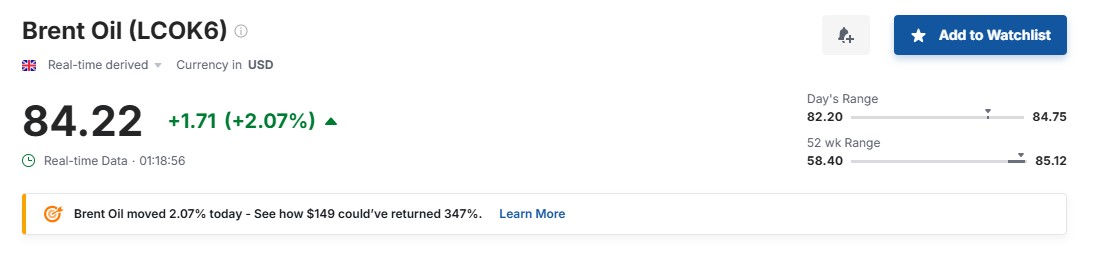 При этом в ходе торгов цена Brent поднималась выше $84, что более чем на 3% выше уровня предыдущего дня.