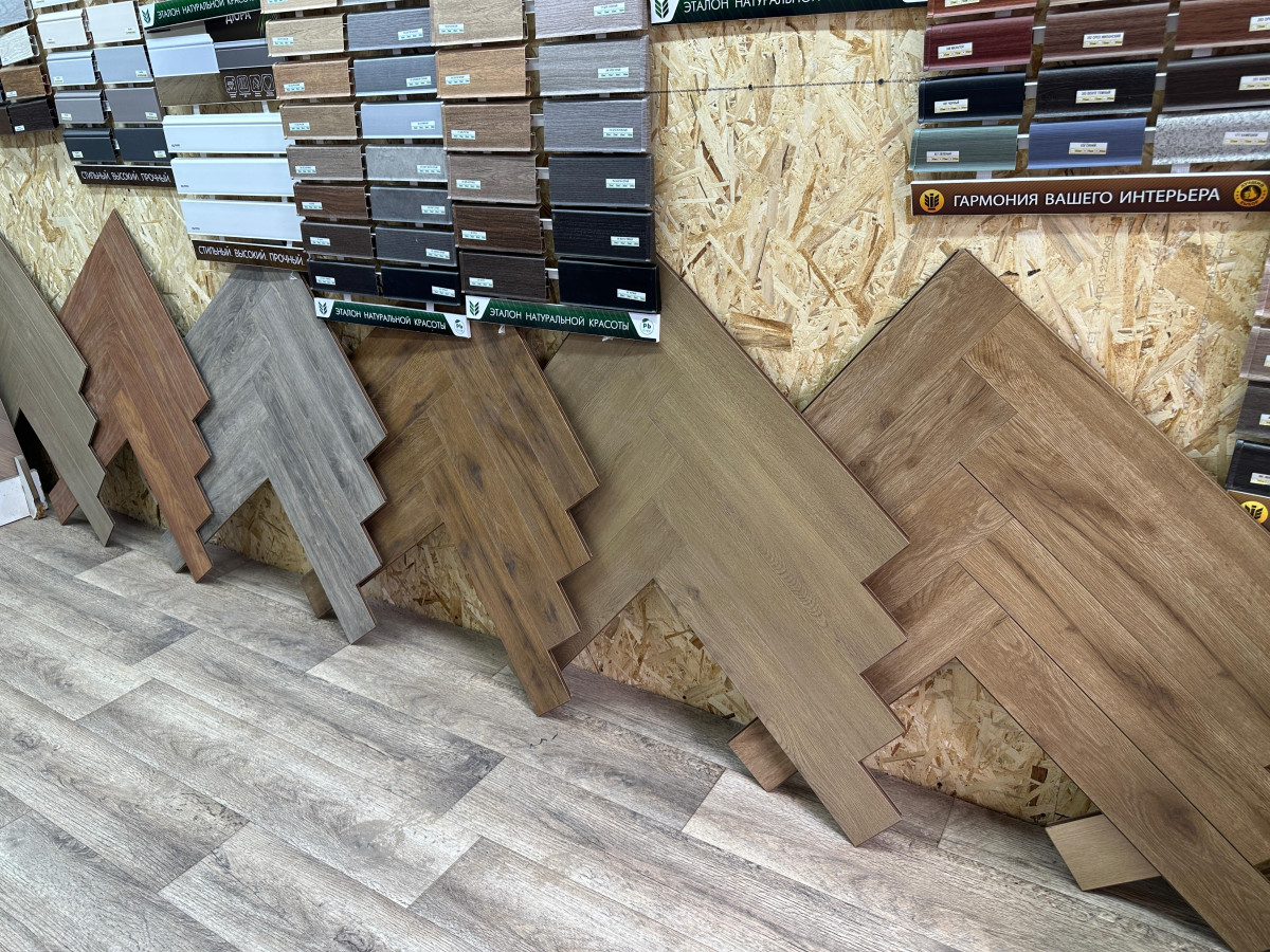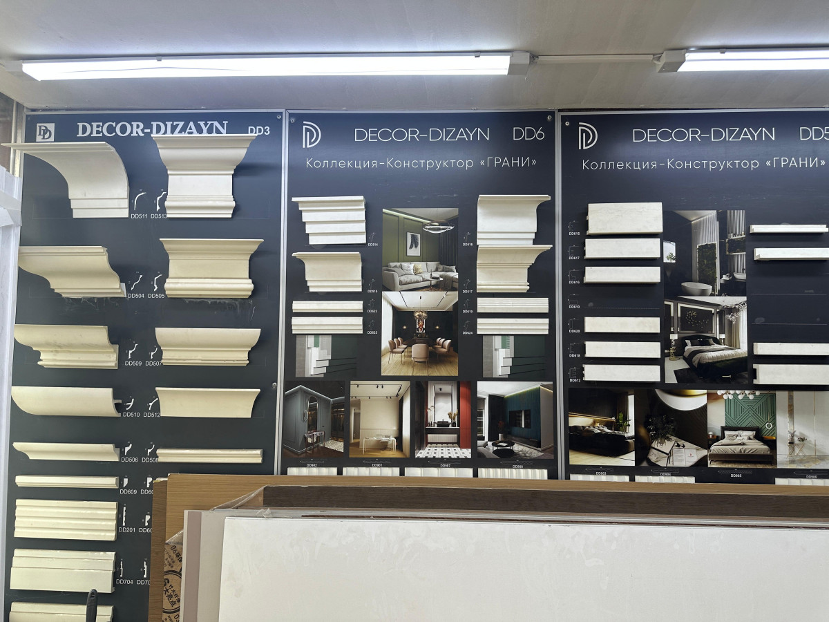 Ламинат предлагают от 4000 тенге за квадратный метр, галтель для потолка — 400–450 тенге за метр. Продавцы отмечают, что стоимость напрямую зависит от курса валют.