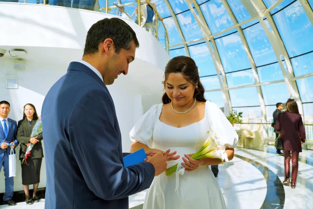 В Нур-Султане на вершине монумента "Байтерек" выдали молодожёнам свидетельства о браке, передаёт BaigeNews.kz со ссылкой на сайт акимата столицы.
