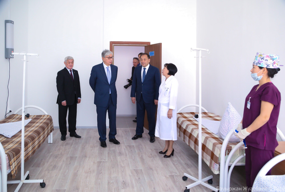 В ходе посещения учреждения Президент Казахстана Касым-Жомарт Токаев осмотрел кабинеты терапии, дневной стационар и станции скорой медицинской помощи поликлиники.