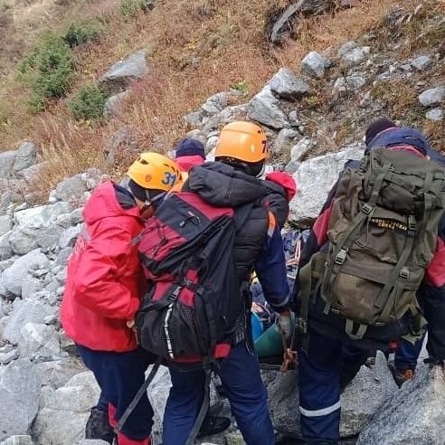 Спасатели на месте оказали мужчине первую доврачебную помощь. Пострадавший был в удовлетворительном состоянии, однако испытывал сильные боли. Помимо сложного горного рельефа, спасательную операцию усложняли погодные условия: был сильный ветер и шел снег с дождем.