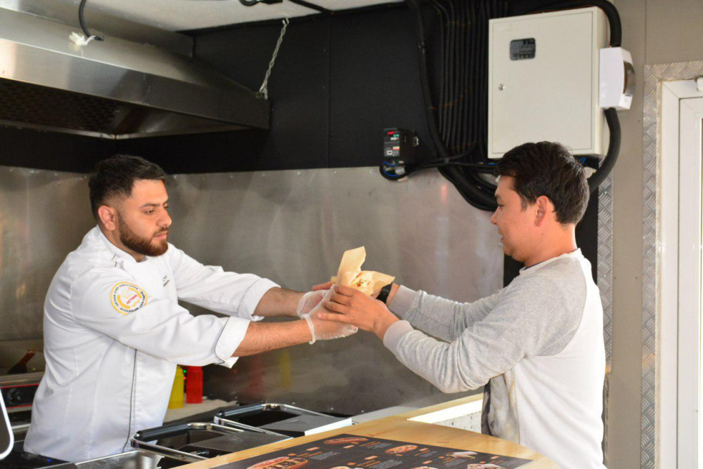 Здесь гости могут отведать натуральный кофе казахстанской обжарки и сэндвичи, приготовленные шеф-поваром, который работал в Турции по специализации street food. «Мясное и овощное сырье мы перерабатываем на центральной кухне. Готовые и упакованные полуфабрикаты собственного производства развозим по фронтальным точкам. Здесь уже остается их довести до готовности: пожарить картофель фри, наггетсы или мясо для бургеров», - говорит владелец сети "STREET GOURMET" Ержан Куанган.