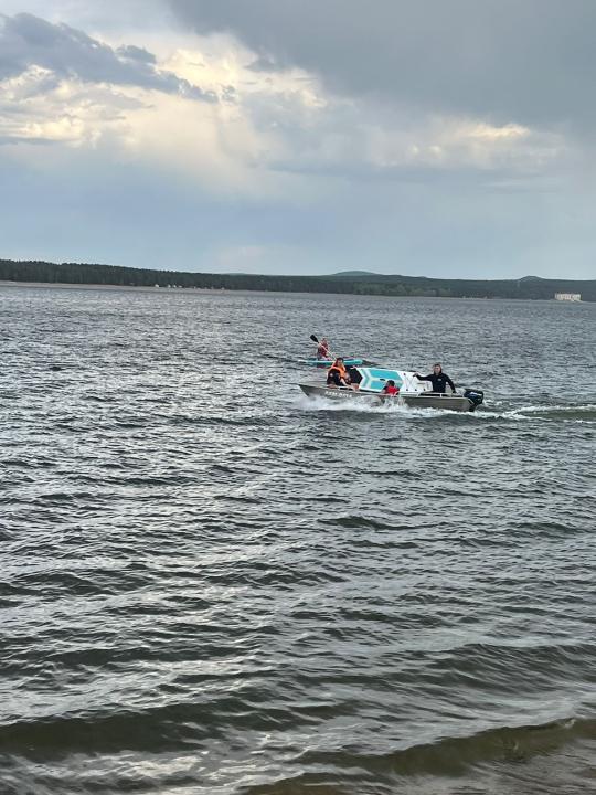 Вчера на озере резко поднялся шторм. Из-за больших волн перевернулась доска с двумя отдыхающими. Оба туриста были в жилетах, что помогло им не утонуть, но высокие волны не давали подняться им на SUP-борд. Отец цеплялся за доску и удерживал десятилетнего сына, чтобы не дать воде унести его сторону.