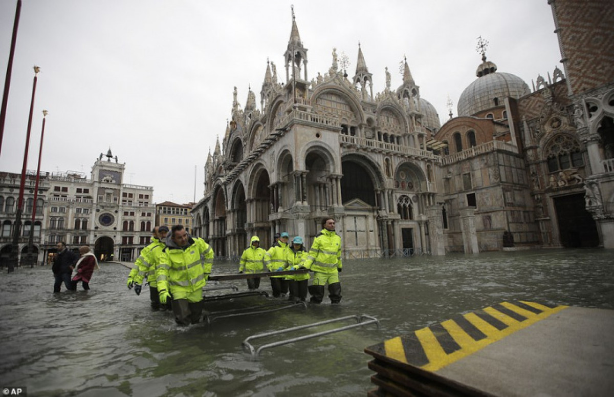 В среду пиковый уровень воды в городе превысил 140 см, ожидается, что днем в пятницу он поднимется до отметки 150 см. Во время наводнения затопило центральную площадь Венеции Сан-Марко, одну из главных достопримечательностей города. Вода залила крипту находящегося на площади собора Святого Марка, в залах самого собора уровень воды превысил 1 метр.